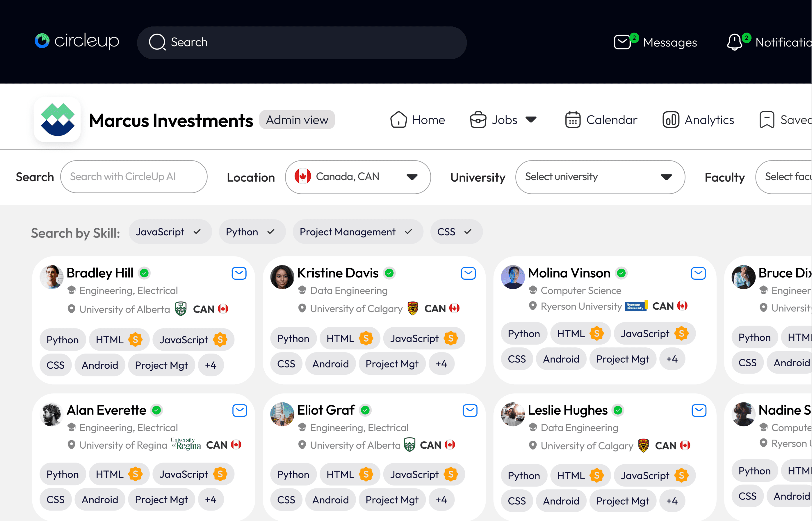 SearchOur search tool offers faster connections with the skilled talent due to its instant results and information-rich profiles.