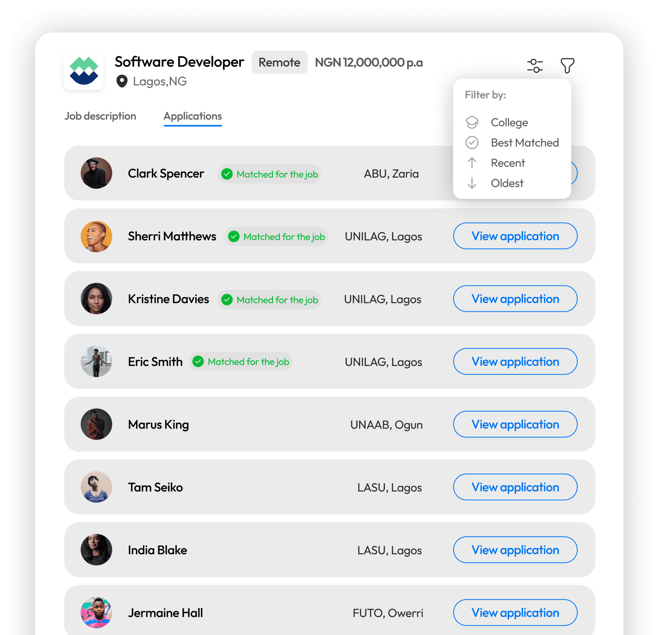AI-powered matching and Resume Filters.
